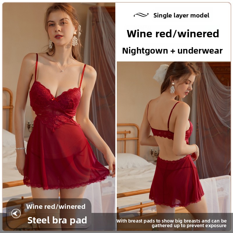 Single-layer burgundy nightgown, Single-layer red nightgown, Single-layer apricot nightgown, Single-layer black nightgown |
